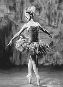 Tütü ve tüylü başlık. 1956 Firebird[8] adlı yapımın başrolü Margot Fonteyn, gösterişli bir şekilde tasarlanmış balerin tütüsü ve tüylü başlığı ile pointe[9] duruşunda. Tüyler ve fırfırlar Firebird kostüm görünümünün yaratılmasına katkıda bulunur.
